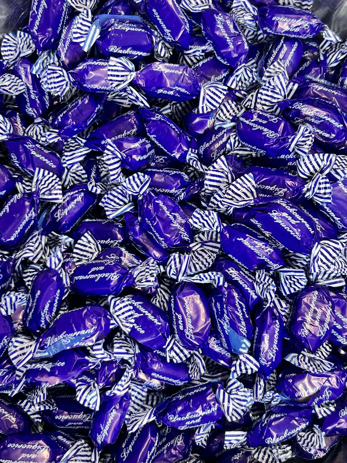 - Blackcurrant & liquorice flavour hard boiled sweets